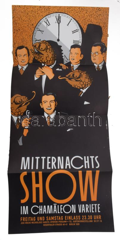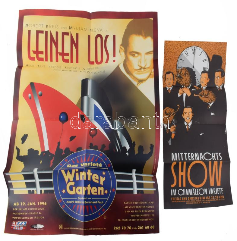 cca 1996-2000 2 db német, berlini varieté plakát. 84x59 és 66x28,5 cm.... https://www.darabanth.com/de/518-Gemalde-Plakat-ex-libris-Auktion/523.0/Gemalde-und-Grafiken/Plakat~3/cca-1996-2000-2-db-nemet-berlini-variete-plakat-84x59-es-66x28-5-cm-Hajtva~II3509594