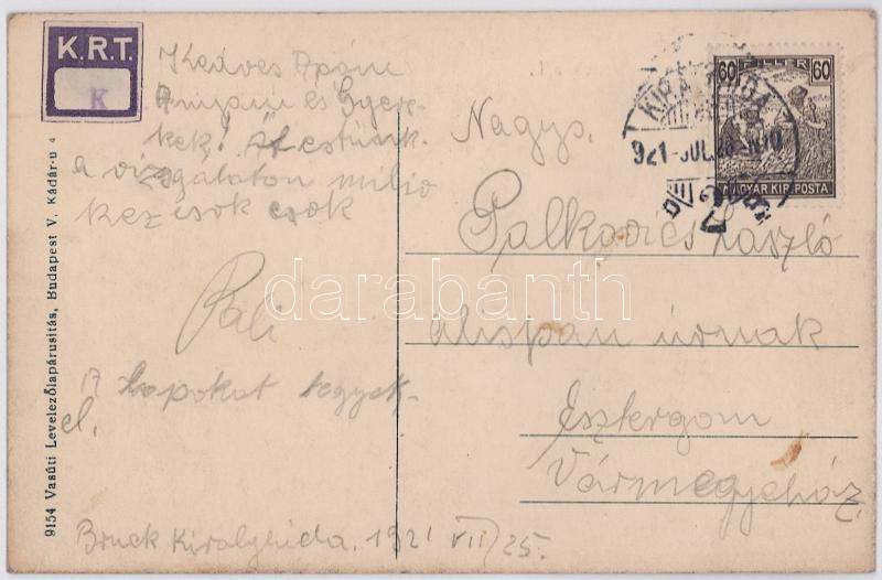 1921 Királyhida, Bruck-Újfalu, Bruckneudorf; Honvéd gyalogsági laktanya. Vasúti levelezőlapárusítás 9154. / Landwehr Inf. Kaserne / military infantry barracks (EK)