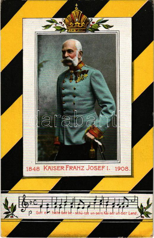 1848-1908 Kaiser Franz Josef I. / Franz Joseph's 60th anniversary of reign. Art Nouveau, coat of arms (EK)