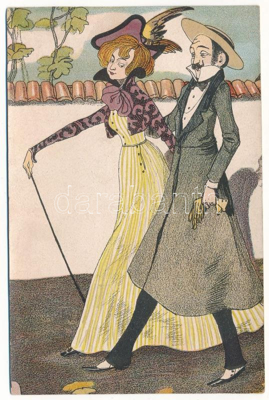 Szerelmespár / love couple art postcard (fl)