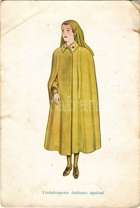 1941 Vöröskeresztes önkéntes ápolónő. A Magyar Vöröskereszt Ápolónői Szakosztályának kiadása / Red cross volunteer nurse (Rb)