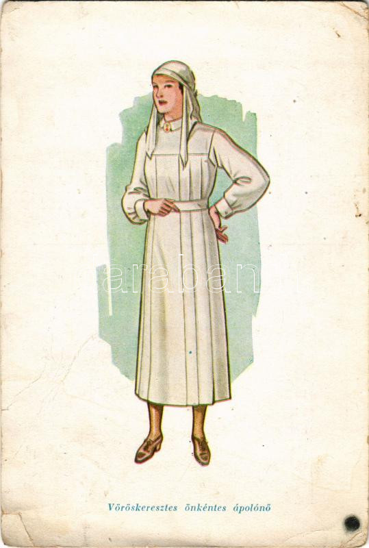 Vöröskeresztes önkéntes ápolónő. A Magyar Vöröskereszt Ápolónői Szakosztályának kiadása / Red cross volunteer nurse (szakadás / tear)