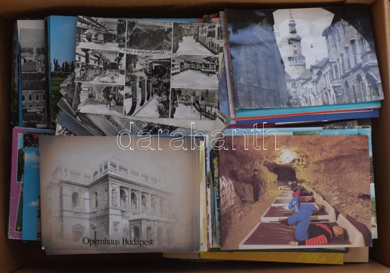 Kb. 800 db magyar és külföldi város képeslap, leporellofüzet dobozban / cca. 800 Hungarian and foreign town postcards in a box