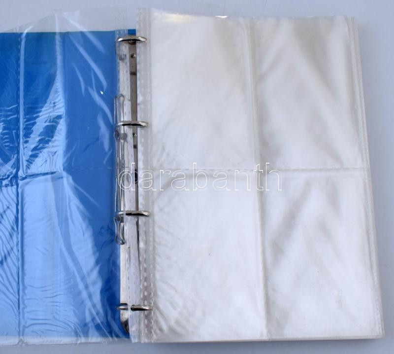 88 lapos, 352 (vagy 704) férőhelyes képeslap berakó, lefűzhető műanyag gyűrűs mappában