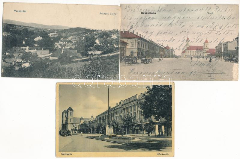 21 db RÉGI magyar város képeslap vegyes minőségben, közte 1 Hajdúszoboszló panorámalap / 21 pre-1945 Hungarian town-view postcards in mixed quality, including 1 panoramacard