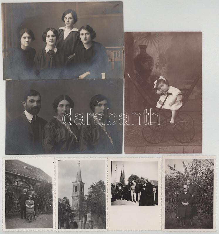 7 db RÉGI fotós képeslap és kisméretű fotó Graz, Celldömölk és Körmend környékéről: családok, személyek, gyerekek / 7 pre-1945 photos and photo postcards from around Graz, Celldömölk and Körmend: families, persons, children