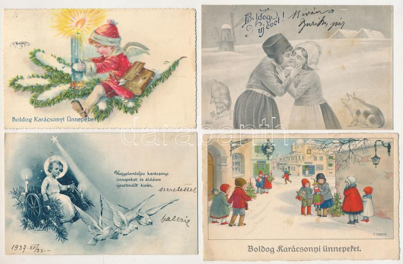 9 db RÉGI karácsonyi és újévi üdvözlőlap / 9 pre-1945 Christmas and New Year greeting art postcards