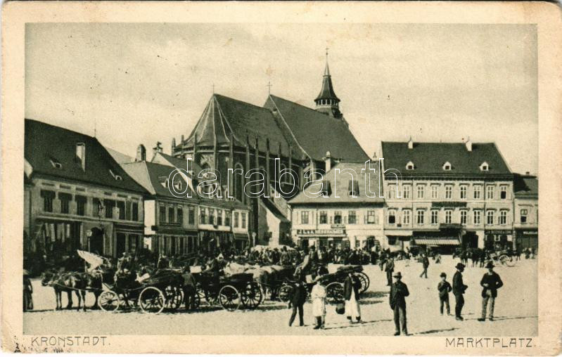 1912 Brassó, Kronstadt, Brasov; Piactér, J. L. & A. Hesshaimer üzlete. H. Zeidner kiadása / Marktplatz / market, shops (EK)