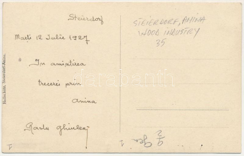 1927 Anina, Stájerlakanina, Stájerlak, Steierdorf; fűrésztelep, fatelep, iparvasút / sawmill, lumber yard, industrial railway. Hollschütz photo