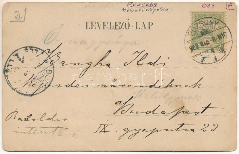 1903 Pozsony, Pressburg, Bratislava; Mélyúti kápolna / Kapelle im tiefen Weg / chapel (EB)