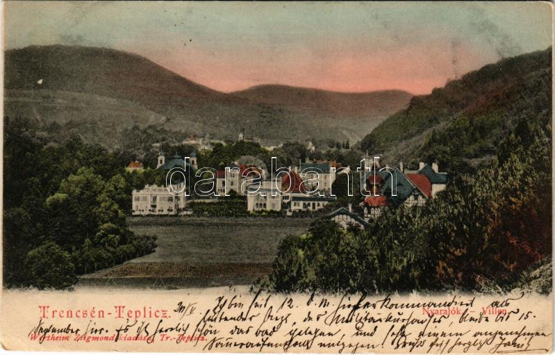 1905 Trencsénteplic, Trencianske Teplice; nyaralók. Wertheim Zsigmond kiadása / Villen / villas (EK)