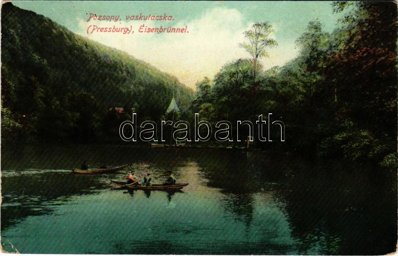 1910 Pozsony, Pressburg, Bratislava; Vaskutacska, csónakázók / Eisenbrünnel (Eisenbründl) / Zelezná Studienka / spa, lake with rowing boats (EK)
