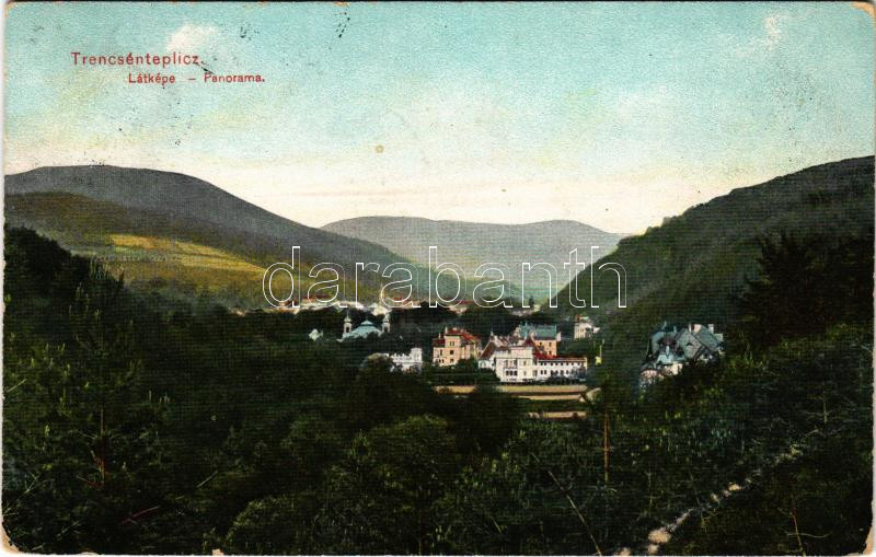 1911 Trencsénteplic, Trencianske Teplice; látkép. Wertheim Zsigmond kiadása / general view (kopott sarkak / worn corners)