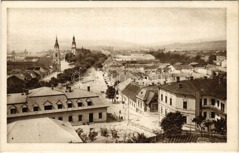 1916 Zólyom, Zvolen; látkép a várból, templomok. Kiadó Uránia papírkereskedés / view from the castle, churches, street view