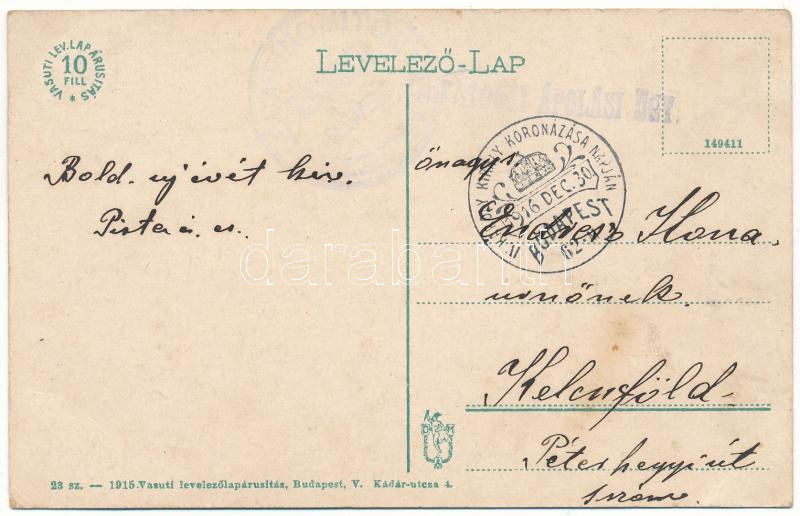 1916 Zsolna, Sillein, Zilina; látkép. Vasúti levelezőlapárusítás 23. sz. 1916. / general view + "IV. Károly király koronázása napján 1916. dec. 30." So. Stpl. (EB)