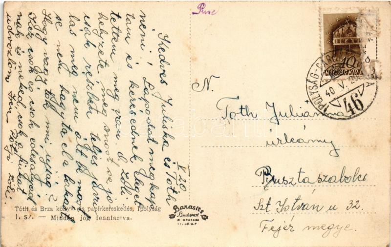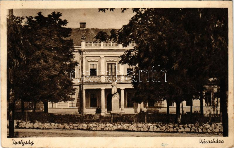 1940 Ipolyság, Sahy; Városháza. Tóth és Brza kiadása / town hall + "IPOLYSÁG - PÁRKÁNY-NÁNA 46" vasúti mozgóposta bélyegző (EK)
