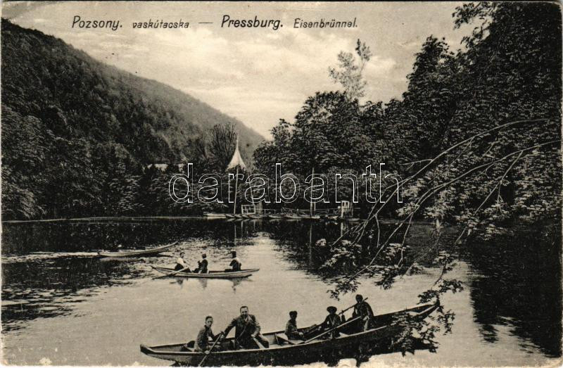 Pozsony, Pressburg, Bratislava; Vaskutacska, csónakázók / Eisenbrünnel (Eisenbründl) / Zelezná Studienka / spa, lake with rowing boats (EB)