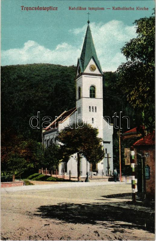 Trencsénteplic, Trencianske Teplice; Római katolikus templom. Ondreicska Fábián kiadása / Katholische Kirche / Catholic church