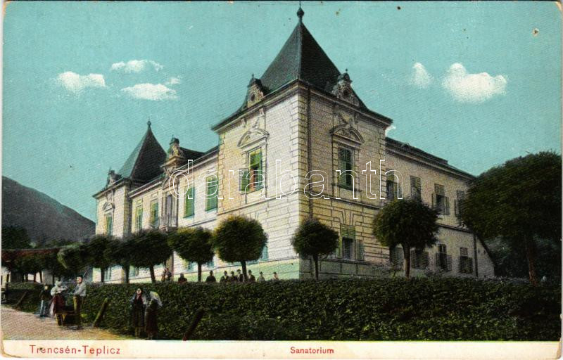 Trencsénteplic, Trencianske Teplice; Szanatórium. Wertheim Zsigmond kiadása / sanatorium (lyukak / pinholes)