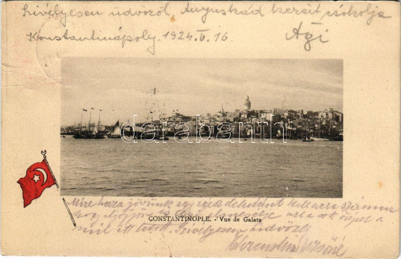 1924 Constantinople, Istanbul; Vue de Galata. E. F. Rochat / port, Turkish flag (Rb)