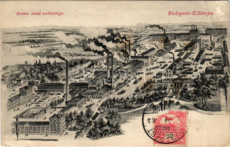 1912 Budapest X. Kőbánya, Dreher Antal serfőződéje, látkép, sörgyár reklám. TCV card (EB)