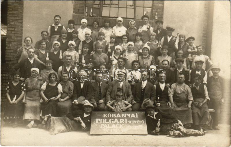 1929 Budapest X. Kőbányai Polgári Serfőző, palack fejtő, gyári munkások, csoportkép. photo