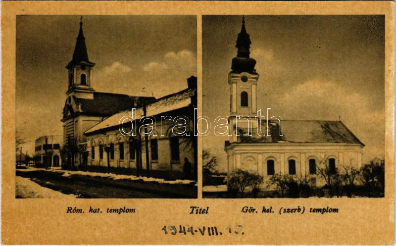 1944 Titel, római katolikus templom, görögkeleti szerb templom / Roman Catholic church, Greek Orthodox Serbian church