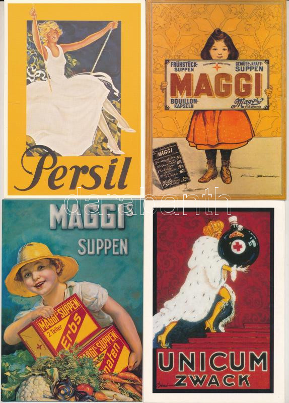 PLAKÁTOK - 12 db MODERN reprodukciós képeslap, közte Zwack, Persil, Maggi reklámok / 12 modern poster reproduction art postcards