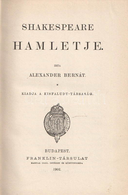 Alexander Bernát (1850-1927) esztéta, színikritikus, egyetemi tanár. Kötet méretű Hamlet-értelmezése az adatgyűjtésre alapozott, összehasonlító szemléletű pozitivista kritika emlékezetes műve.