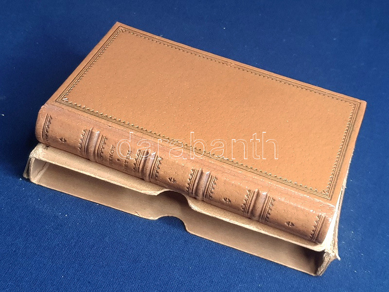 Aranyozott, álbordás kiadói bőrkötésben, felül színes festésű lapszélekkel, enyhén sérült kiadói tokban. Szép példány.