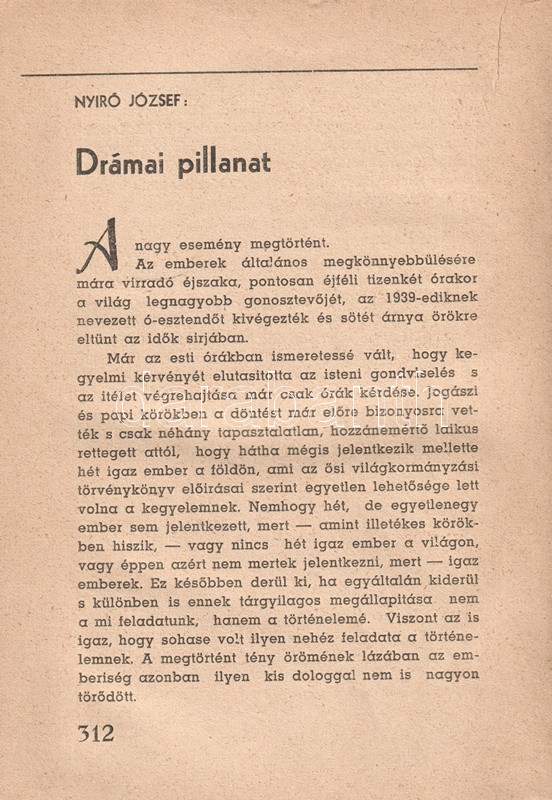 A tartalomból: Bányai Ernő: Milyen üzlet a háború -- Bárdos László: Szálloda a mellékutcában -- B. Dénes Kató: Az albérlő -- Gárdos Sándor: Egyszeregy. Bergengóciai történet -- Halász Sándor: Két háború a mérlegen -- Imre Sándor: Színházi nagyságok a háború sodrában -- Karácsony Benő: Dr. Farm. Angyal levele Párisból -- Lakatos Imre: Churchill -- Markovits Rodion: Fin de siecle -- Nyirő József: Drámai pillanat -- Tabéry Géza: Halál Firenzében -- Thury Zsuzsa: Julia néni.