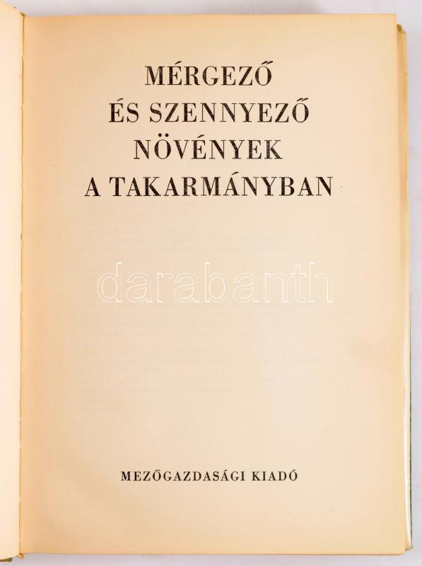 Haraszti Ede - Bokori József: Mérgező és szennyező növények a takarmányban. Bp., 1963, Mezőgazdasági Kiadó, 395+[1] p.+ 12 t. Második, átdolgozott, bővített kiadás. Kiadói félvászon-kötés, kissé sérült kiadói papír védőborítóban. Megjelent 2000 példányban.