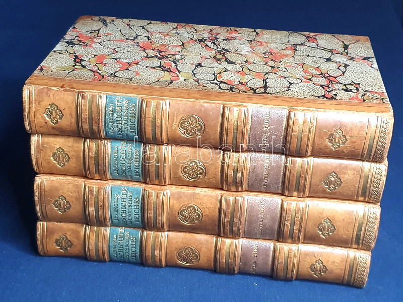 Poss.: Ybl Miklós (1814-1894) magyar építész, a XIX. századi építészet kiemelkedő mestere. Egységes, négy bordára fűzött, aranyozott gerincű korabeli félbőr kötésben, az aranyozott címfeliratok a gerincen zöld és barna címkén, színes festésű lapszélekkel. Dekoratív, szép példány.