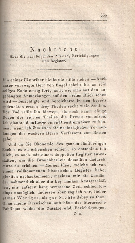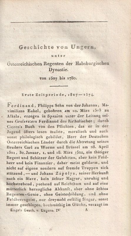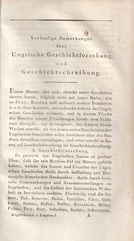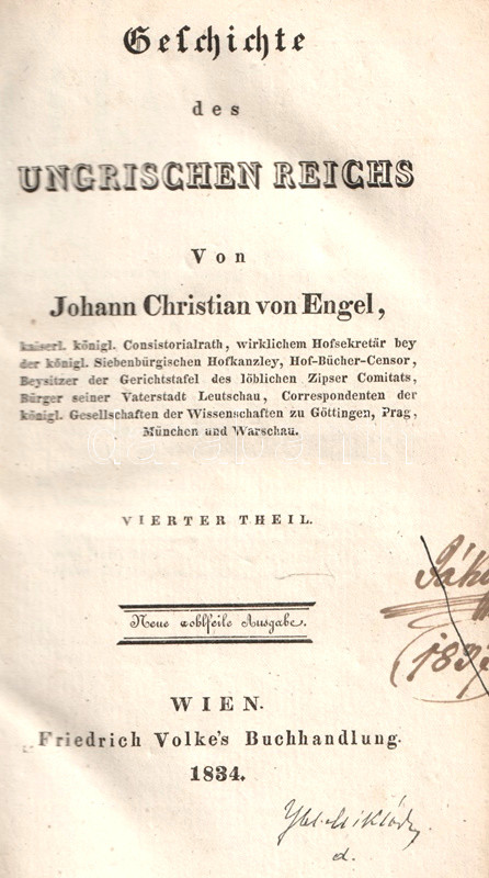 A lőcsei születésű Johann Christian von Engel (1770-1814) bécsi történész, erdélyi kancelláriai fogalmazó pályája közepén a közép-európai térség, pályája végén kimondottan Magyarország történetével foglalkozott. Érdemei elismeréséül I. Ferenc király Szepes megyei táblabíróvá avatta, Lőcse városa pedig polgári oklevéllel ajándékozta meg. "Geschichte des Ungrischen Reichs" című történeti szintézisét pályája legvégén, összegzésként írta meg. Az öt részre osztott mű az ország politikatörténetét tárgyalja, a kezdetektől 1780-ig.