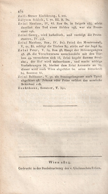 [Bécs] Wien, [1813-1814]. [Camenischen Buchhandlung] (Gedruckt in der Buchdruckerey der v. Ghelenschen Erben). 1 t. (címkép) + IV + 507 + [9] p. + 1 t. (kihajtható nemzetiségi táblázat); XII + 386 p.; [4] + 536 p.; [2] + 454 p. Első kiadás.