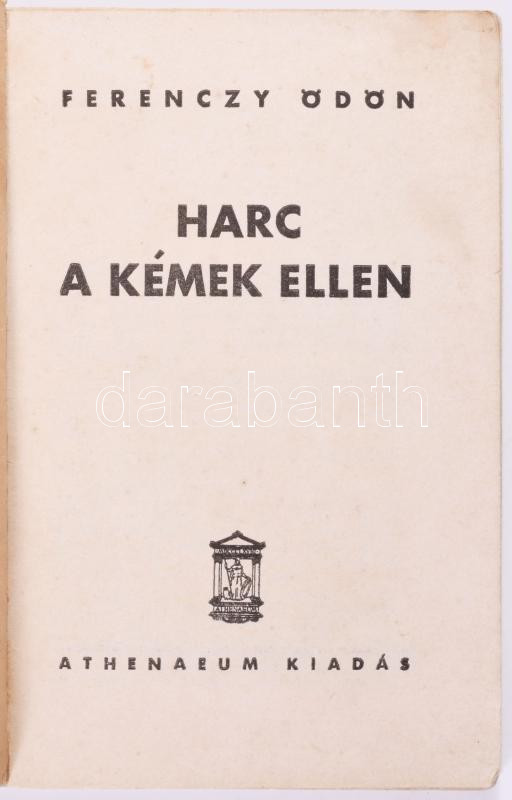 Ferenczy Ödön: Harc a kémek ellen. (Szebb jövő könyvtára 3.) Bp., é.n., Athenaeum. 68 p. Kiadói, színes, illusztrált, kissé foltos papírkötésben, gerinc ragasztott.