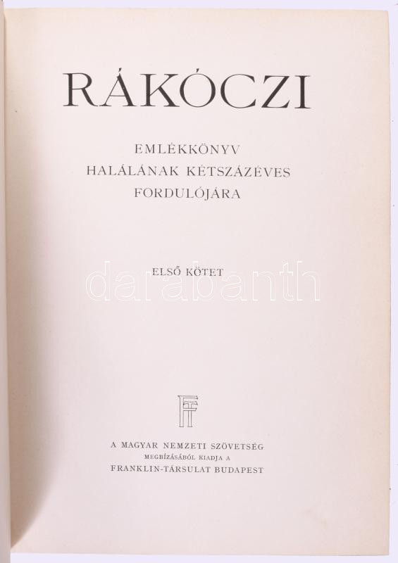 Lukinich Imre (szerk.): Rákóczi. Emlékkönyv halálának kétszázéves fordulójára I-II. Bp., Franklin. Nyolc színes műmelléklettel, 300-nál több képpel és vázlattal. Kiadói kartonált kötés, sérült gerinc, kopottas állapotban.