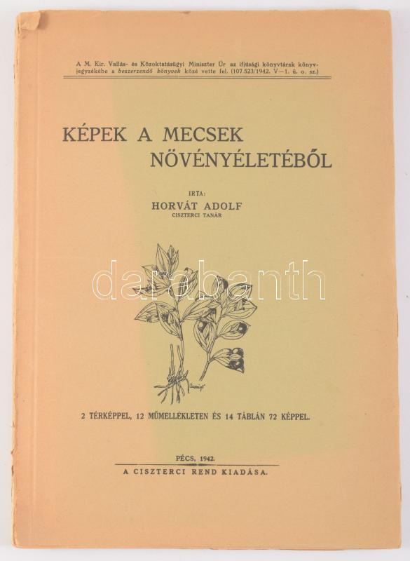 Horvát Adolf: Képek a Mecsek növényletéből. Pécs, 1942, Ciszterci Rend, kissé szakadt papírkötés.