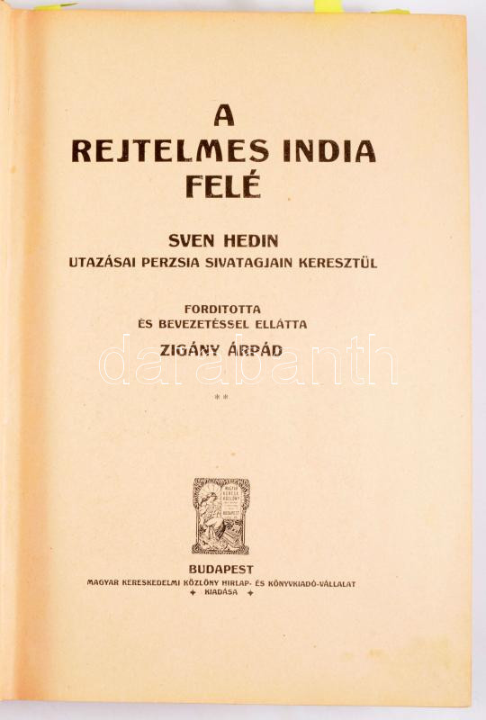 Hedin, Sven: A rejtelmes India felé. Sven Hedin utazása Perzsia sivatagjain keresztül. Ford. és bevezetéssel ellátta Zigány Árpád. I-II. kötet. [Teljes.]