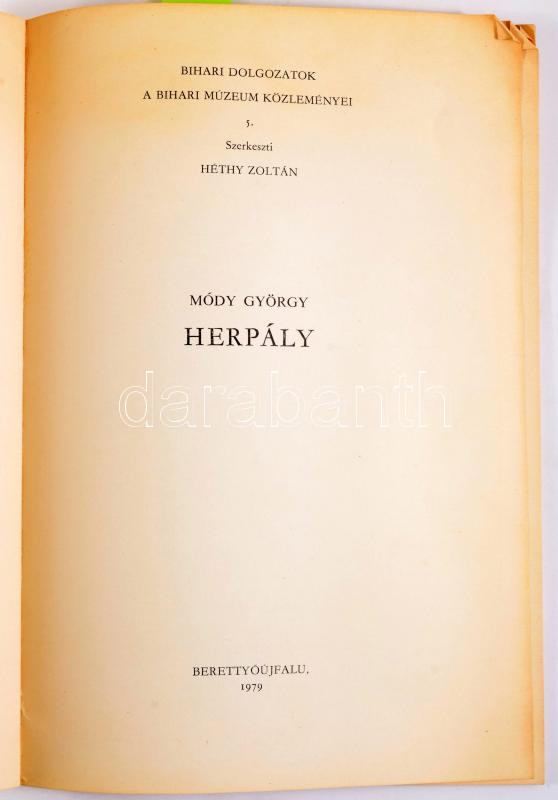Módy György: Herpály. Bihari Dolgozatok 5. Berettyóújfalu, 1979.,Berettyóújfalu Városi Tanácsa, 39 p.+1 t. Kiadói papírkötés, a borítón kis gyűrődésekkel.