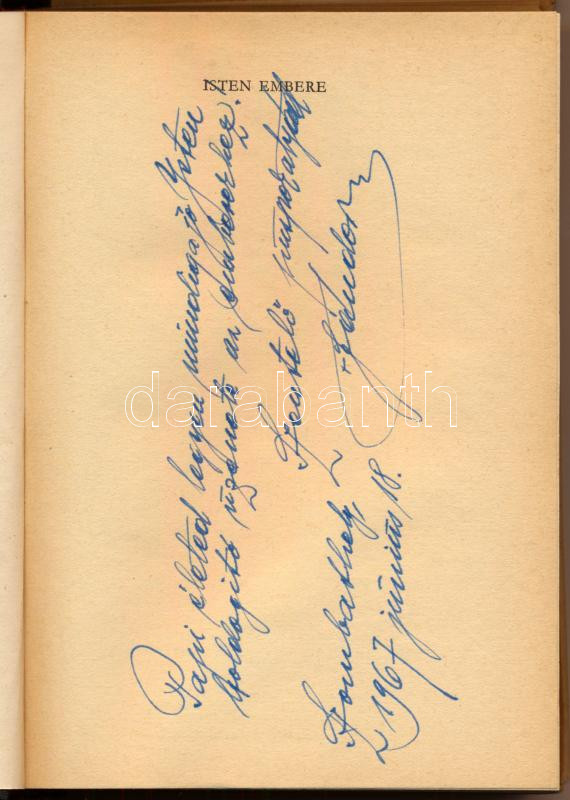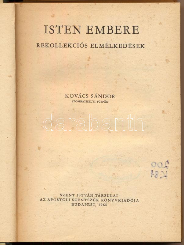 Isten embere. Rekollekciós elmélkedések. DEDIKÁLT! Bp., 1966, Szent István Társulat, 307 p. Kiadói félvászon-kötés, szakadt kiadói papír védőborítóban, volt könyvtári példány.