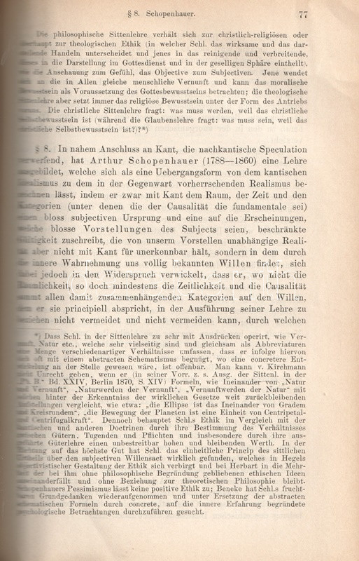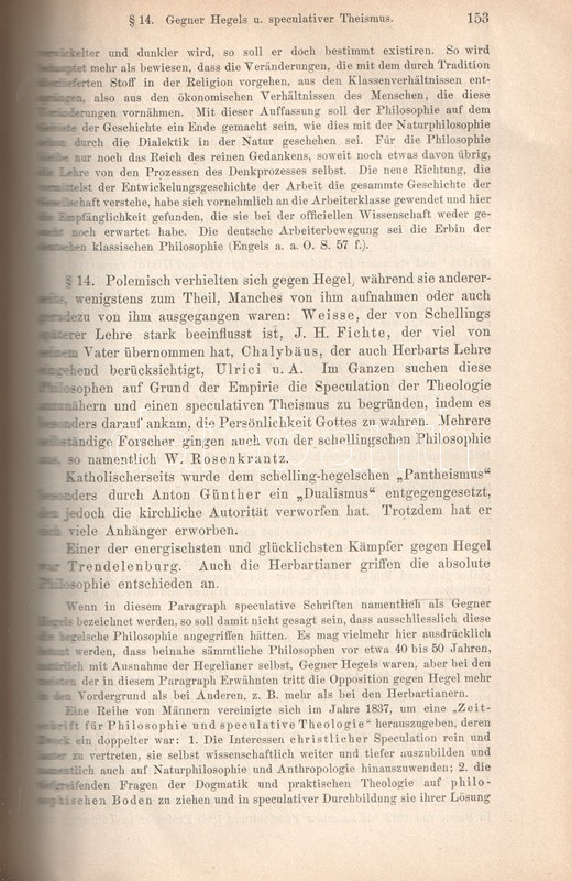 Bár minden résznek megvannak a kulcsfontosságú filozófusai, melyek munkásságát feltűnő részletességgel tárgyalja szintézisünk: az első rész Arisztotelészt és a sztoikusokat, a második Augustinust és Aquinói Szent Tamást, a harmadik Descartes-t és Kantot helyezi középpontba, a negyedik korszakban nincs ilyen kitüntetett filozófiai középpont. A német egyetemek hivatalos filozófiai szintézisének negyedik részében a materializmusra és a darwinizmusra feltűnően kevés fény esik, a közel kortárs filozófiatörténet két nagy felforgatója közül Marx csekély, Nietzsche pedig csak közepes figyelmet kap: tárgyalásuk terjedelme egyben jelzi a két gondolkodó hivatalos, egyetemi beágyazottságának korabeli színvonalát.