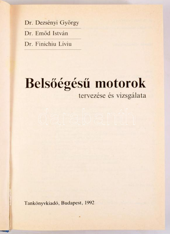 Dezsényi György-Dr. Emőd István-Dr. Finichiu Líviu: Belsőégésű motorok tervezése és vizsgálata. Bp.,1992, Tankönyvkiadó, 863 p. Megjelent 3000 példányban. Kiadói kartonált papírkötés.