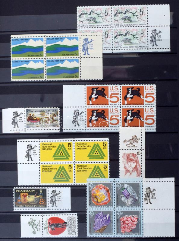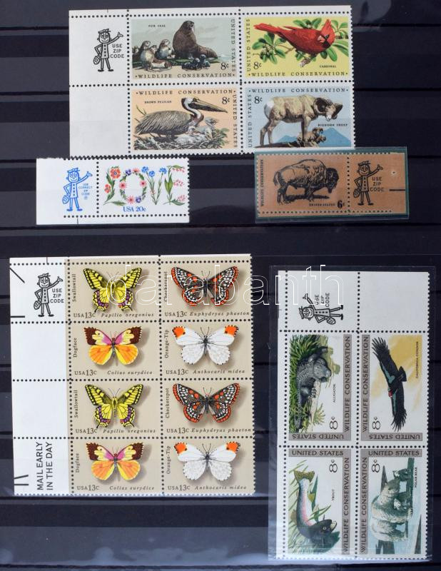 16 fehér lapos A4-es berakóban, benne főleg USA pecsételt és postatiszta bélyegek