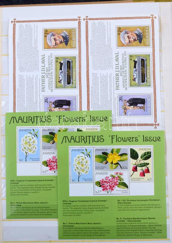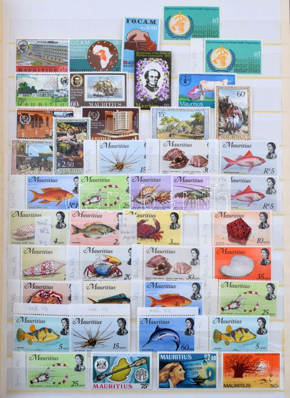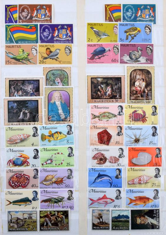 Mauritius postatiszta anyag jó sorokkal és kisívekkel az 1968-1981 közötti időszakból, 8 fehér lapos A4-es berakóban. Szép anyag! Több száz EUR kat.érték!