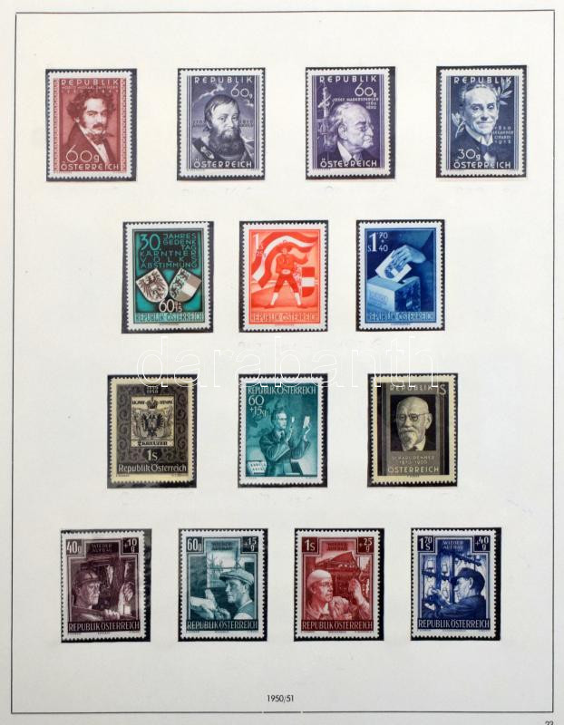 Ausztria gyűjtemény 1945-től jobbakkal nagyalakú műanyag lapos berakóban