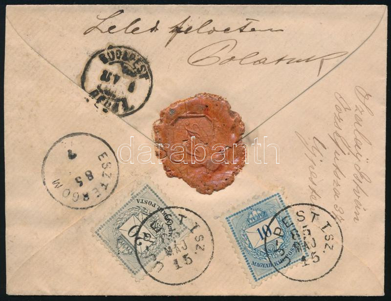1885 Ajánlott expressz levél 1881-es Színesszámú 10kr + 20kr 11 1/2 fogazással "UJPEST I. SZ." - "ESZTERGOM"