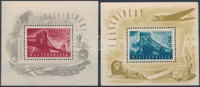 1949 Lánchíd (I.) + (II.) 1-1 blokk (80.000) (gumi hibák / gum disturbance)
