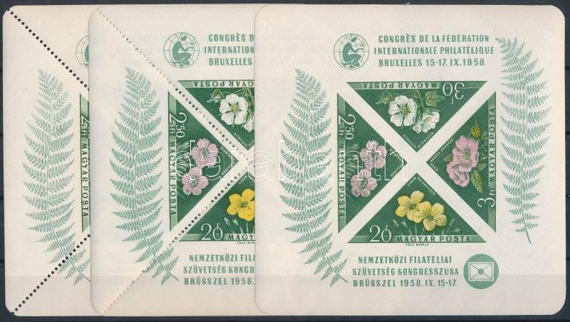 1958 FIP (I.) - Virág (I.) 2 db fogazott blokk kétféle fogazással + 1 db vágott blokk (40.000)