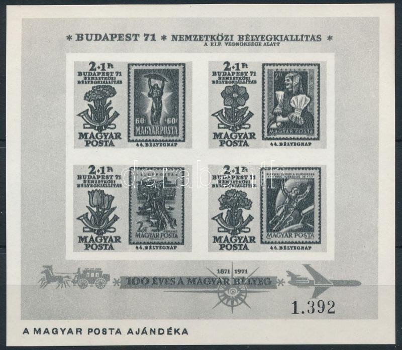 1971 Bélyegnap (44.) - Budapest '71 (IV.) ajándék vágott blokk, feketenyomat (30.000)